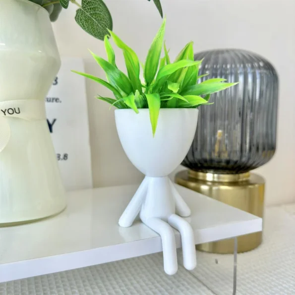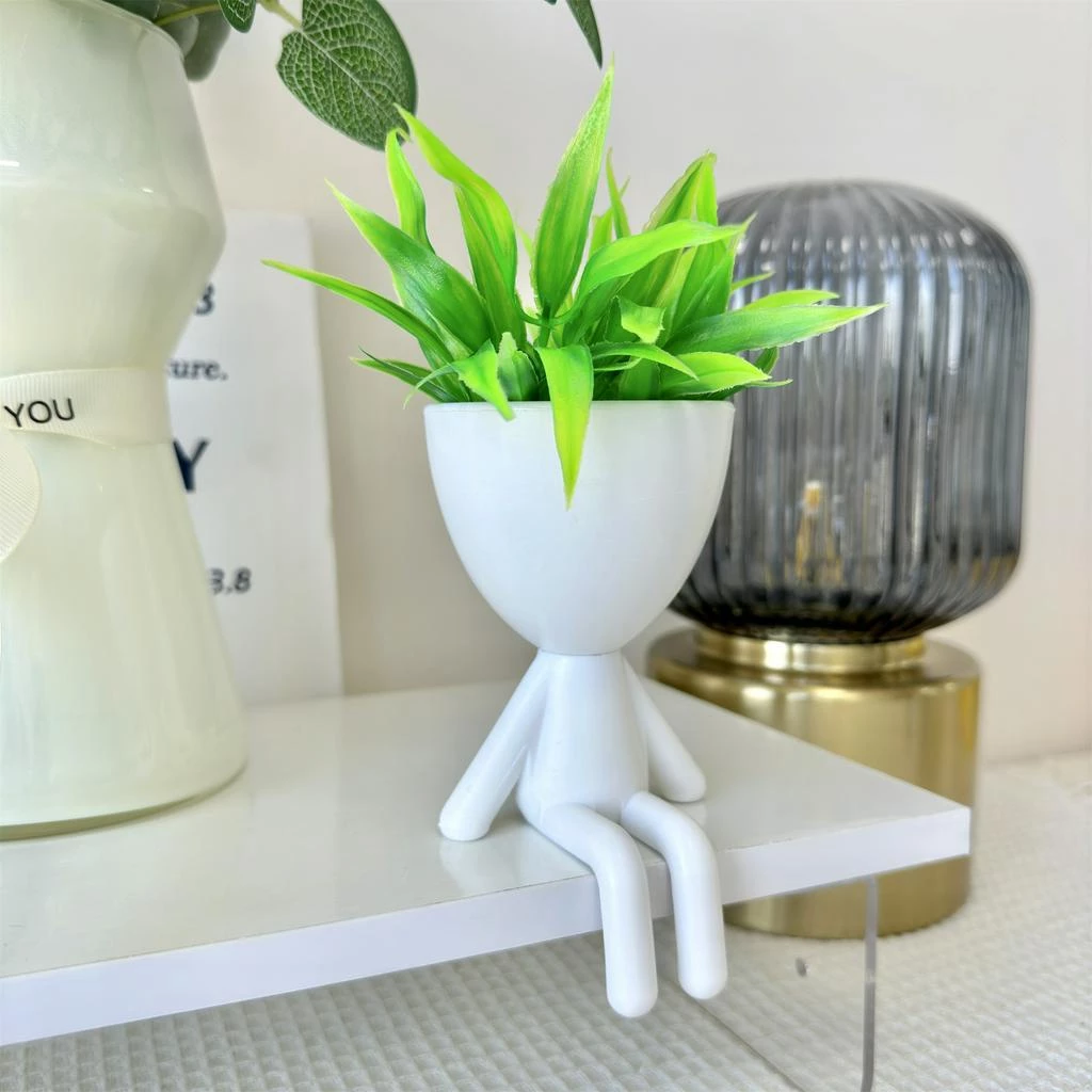 Artificial Succulents Plants in Plastic Human Shaped Pots Sitting